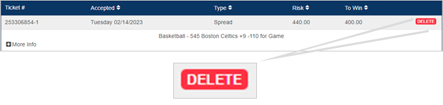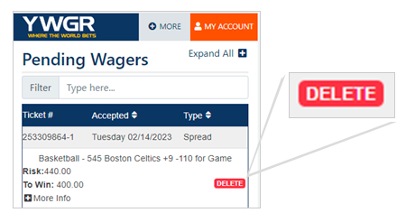 This will take you to a list of your pending wagers. And wagers that are eligible for deletion will display a red ‘DELETE’ button all the way to the right of the menu.